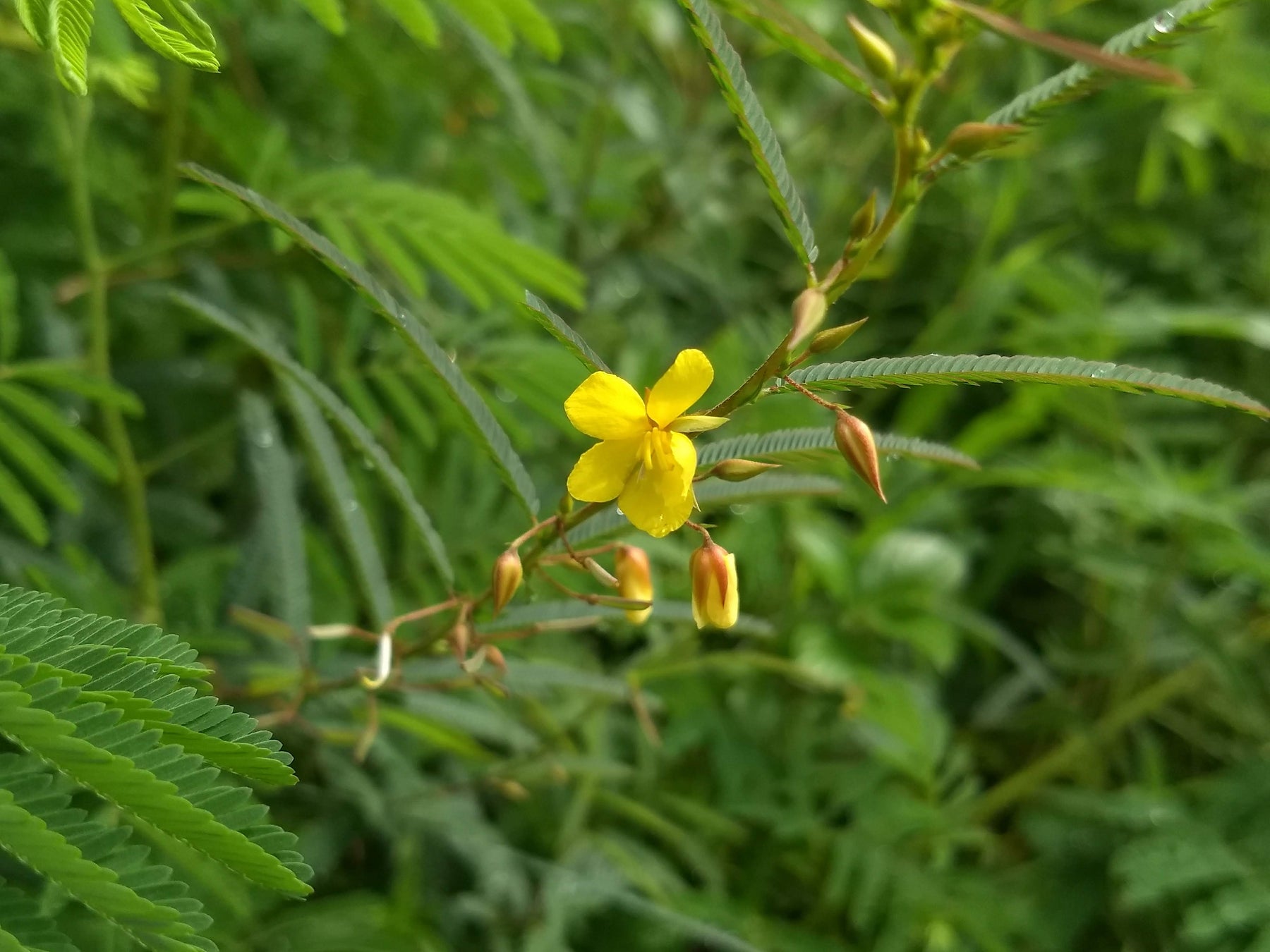 Chamaecrista fasciculate, commonly known by a large number of common names including partridge pea, prairie senna, golden cassia, large-flowered sensitive pea, sleeping plant, and locust weed, is a showy annual flower in the legume family that typically grows to 1-3’ tall. Shorter plants stand erect, but taller plants tend to sprawl. It is native to a variety of habitats including rocky open woods, upland slopes, ridges, bluffs, prairies, grasslands, rocky fields and open thickets in the eastern, mid-western and Great Plains sections of the U. S.